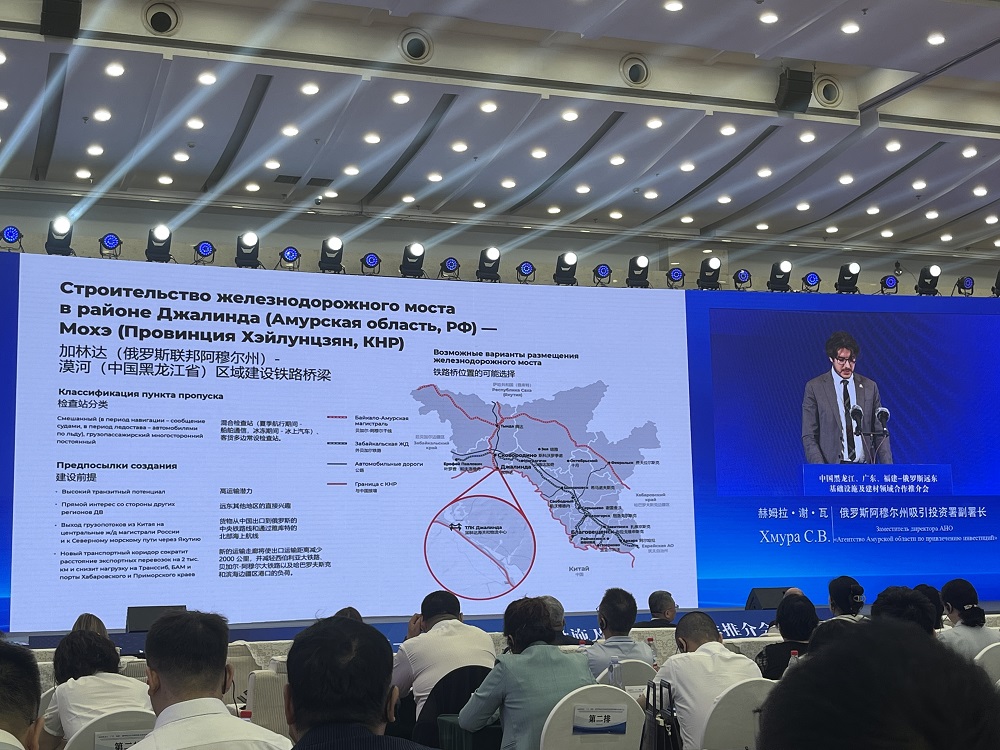 薩哈(雅庫特)共和國政府副主席斯捷潘諾夫、阿穆爾州吸引投資署副署長赫姆拉·謝爾蓋及雅庫特鐵路股份公司執(zhí)行董事顧問阿布拉莫夫·阿列克謝先后在不同的專場活動中就漠河-加林達(dá)國際運輸走廊項目進(jìn)行推介,重點闡述了項目的廣闊發(fā)展前景及實施計劃。